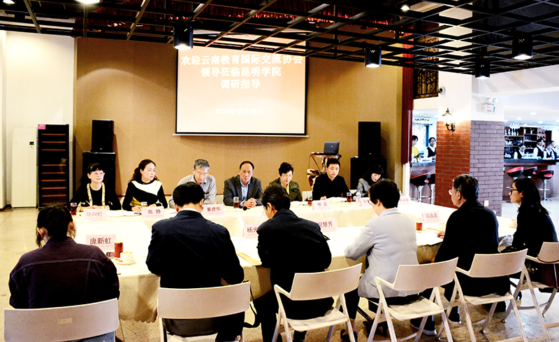 10月25日,云南教育国际交流协会会长、省政协原副主席倪慧芳,云南教育国际交流协会副会长杨光民等一行6人到beat365英国官方网站调研指导国际交流工作,实地走访、参观学校校园规划建设、中国—上合组织青年交流中心、滇池流域生态博物馆,对学校国际交流工作提出指导意见。