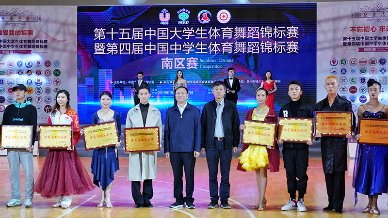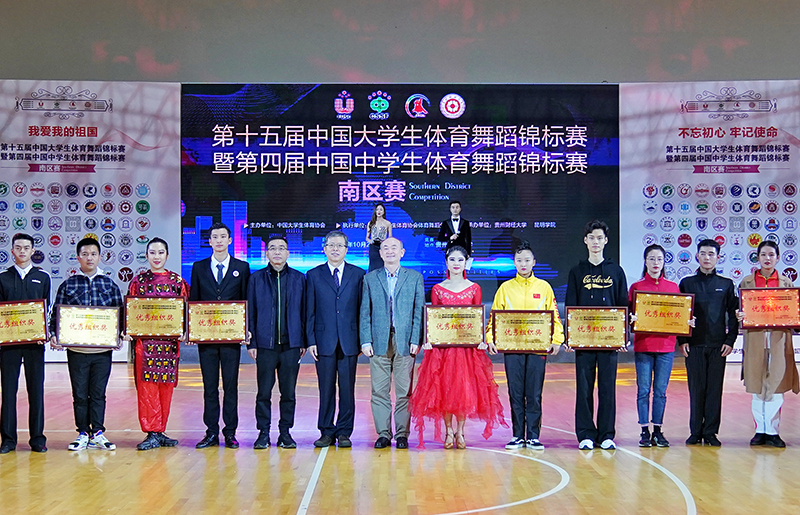 10月26日,由中国大学生体育协会主办,中国大学生体育协会体育舞蹈分会具体执行的第十五届中国大学生体育舞蹈锦标赛暨第四届中国中学生体育舞蹈锦标赛(南区赛)在贵州财经大学开赛。beat365英国官方网站作为中国大学生体育协会体育舞蹈分会主席单位,副校长王凡率领中国大学生体育协会体育舞蹈分会秘书长、学校音乐舞蹈学院院长黄清林,中国大学生体育协会体育舞蹈分会常务副秘书长、学校音乐舞蹈学院体育舞蹈教研室主任田应娟等工作团队到会指导大赛工作。
