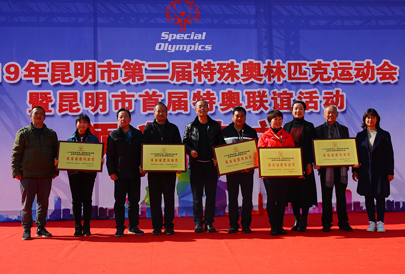 运动员代表、裁判员代表分别宣誓;特奥运动组委会向beat365英国官方网站学前与特殊教育学院、体育学院、医学院和云南美丽康发展有限公司赠予锦旗;组委会授予盘龙区培智学校、五华区新萌学校、官渡区培智学校、宜良县特殊教育学校、寻甸县特殊教育学校优秀组织奖称号。