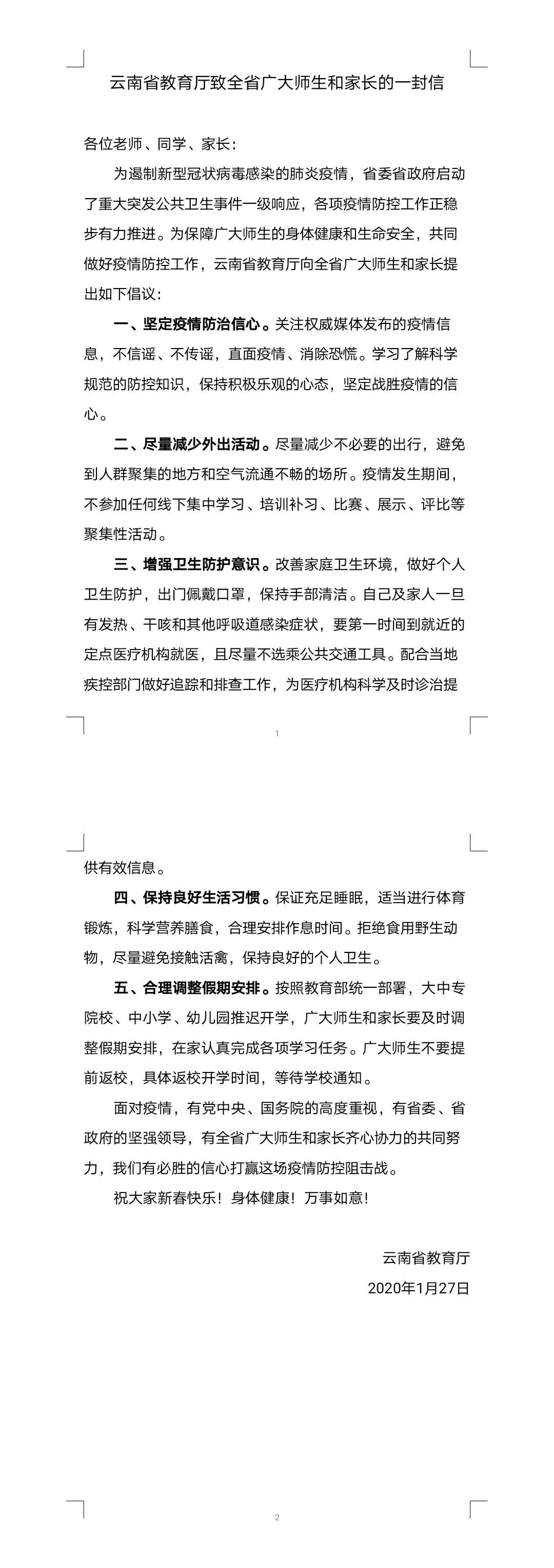 【昆院战“疫”】云南省教育厅致全省广大师生和家长的一封信