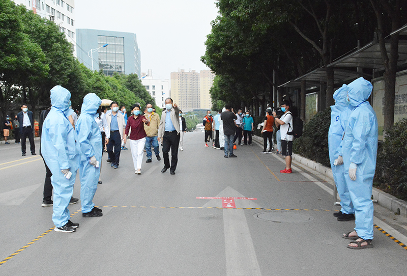 培训会后,陈永明书记、黎素梅校长率全体校领导、学校疫情防控小组成员单位负责人,二级学院党政班子成员、全体辅导员、全体班主任到学校大门入口、校医院等重点区域进行学生返校疫情防控现场演练。整个演练环节平稳有序、行动快捷、分工明确、措施得当、操作熟练,积累了疫情防控经验,全面提升了学校疫情防控能力,为学生即将返校复课提供安全保障,进一步筑牢校园安全防线。