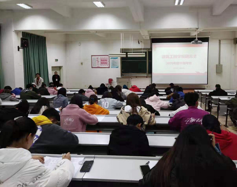 为进一步提升建筑工程学院学生干部及学生会工作人员思想政治理论水平,强化学生干部及学生会工作人员的政治性、先进性、群众性,明确工作职责和目标。12月18日晚,建筑工程学院团总支在博识楼1001开展建筑工程学院团总支学生干部及学生会工作人员专项考试。学院团总支各部门学生干部,学生会各部门工作人员以及各团支部支委共93名同学参加了考试。
