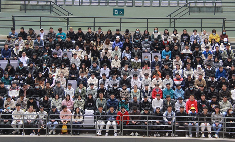 12月23日,建筑工程学院2021级毕业生就业创业工作推进大会在学校综合体育馆举行,学院党委书记王涛、副书记侯青妮、副院长王春华、朱维伟,负责就业工作的辅导员王进英、教学秘书周卫霞以及2021届全体400余名毕业生参加了本次大会。会议由学院团总支书记余一夫主持。
