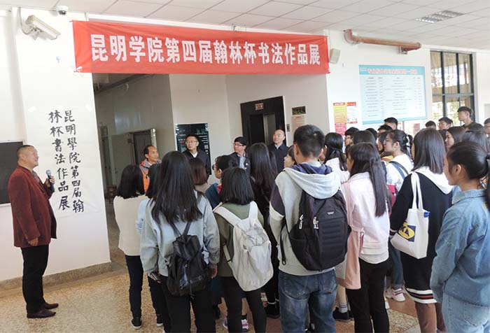 开幕式上,莫南明院长致开幕辞。他说中国书法艺术历史悠久、源远流长,通过比赛可以培养青年学生学习、欣赏书法艺术作品的审美情趣。莫南明院长高度肯定了参加本次书法比赛的同学,希望 “翰林杯”书法作品大赛能持续举办下去,吸引更多的学生参与比赛。随后,与会嘉宾在签名簿上题名,并就如何建设好高校书法工作站、如何培养校园书法素养以及办好书法相关竞赛等问题进行了深入交流,达成共识,并对本次书法作品展的质量给予了充分肯定。