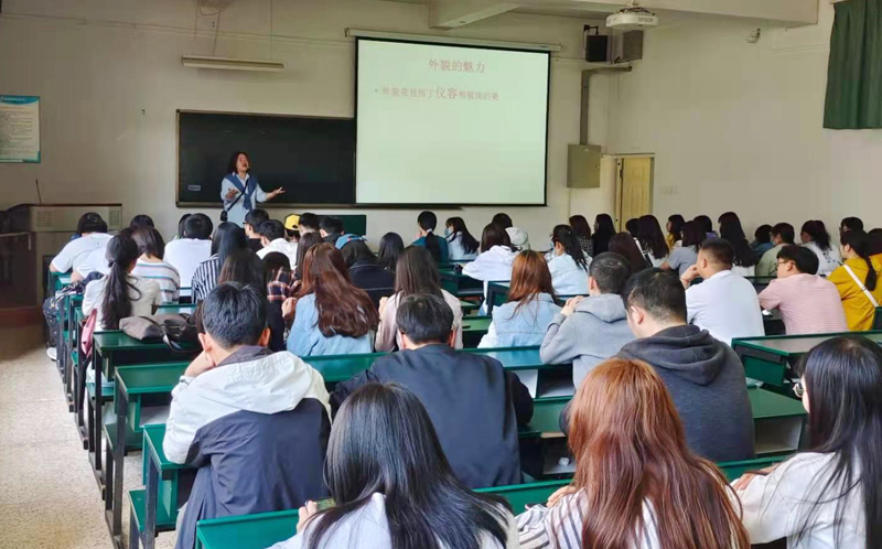 贾晶老师主讲,她从面试自我介绍,互动问答,语言表达等方面,讲解如何更好地在面试环节中展示自己。贾晶老师引导学生进行思维转换,以企业招聘的需求作为切入,模拟企业HR招聘思维,让学生跳出自我的限制,重新明晰自我优势和不足,并让同学们现场模拟面试环节,针对个人存在的不足给予了指导和建议。