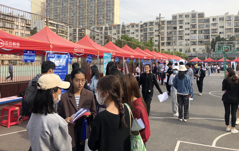 4月16日,经济管理学院2021届高校毕业生就业双选会在昆师路校区篮球场举行。学校招生就业处副处长贾斌,就业指导服务中心副主任宋任琪莅临现场指导工作。学院党委书记樊传章、院长雷新华,副书记鲍鲲,负责就业工作辅导员和毕业班班主任参加双选会。洋浦校区、昆师路校区600余名经济管理学院毕业生到场应聘。