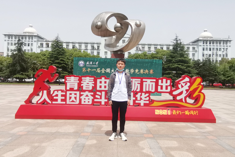 全民抗疫稳,再赴樱花约。4月16日,在武汉解封一周年之际数学学院2016级孙波同学到武汉大学参加第十一届全国大学生数学竞赛决赛。该赛事原计划3月27日举行,但突如其来的新冠肺炎疫情打乱了所有人的生活,赛事因疫情而延期,最终在以习近平同志为核心的党中央坚强领导下,全国上下同心,人民众志成城,取得了疫情防控阻击战的阶段性胜利。目前,全国上下在防疫的同时抓紧恢复生产生活秩序,第十一届全国大学生数学竞赛决赛在延期达一年后,按原计划在武汉大学举行。