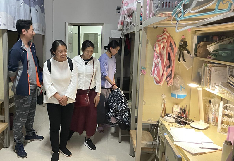 学院党委书记、副书记与各年级辅导员、班主任分批分组来到学生宿舍中,就学生的日常生活、专业学习、考研目标、就业规划、宿舍卫生、住宿管理、安全隐患等问题与同学们进行亲切交流。老师们认真查看宿舍卫生、安全用电等情况,及时了解学生的思想动态和学习生活需求,并将学校采取的一系列服务举措和安全提示传达给学生,嘱咐同学们要努力营造良好的宿舍环境和文化氛围,积极申报创建文明宿舍、党员示范宿舍和特色宿舍,自觉遵守宿舍管理规定,提防网络诈骗,安全用电,防火防盗,消除各种安全隐患,确保人身和财产安全。