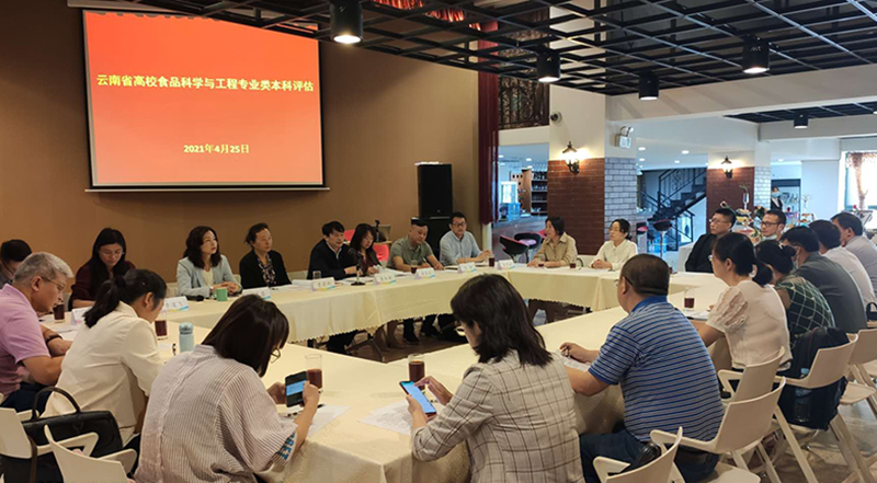 4月25日,云南省2021年高校本科专业综合评价食品科学与工程类专业点评价会议在学校旅游学院酒水实验室召开。食品科学与工程类专业类组长、昆明理工大学农业与食品学院常务副院长(正处级)曹建新教授,副组长、云南农业大学食品科学技术学院党委书记龚加顺教授,beat365英国官方网站旅游学院院长田芙蓉教授、烹饪与营养教研室王京法主任及全省近30名食品科学与工程类专业负责人参加会议。