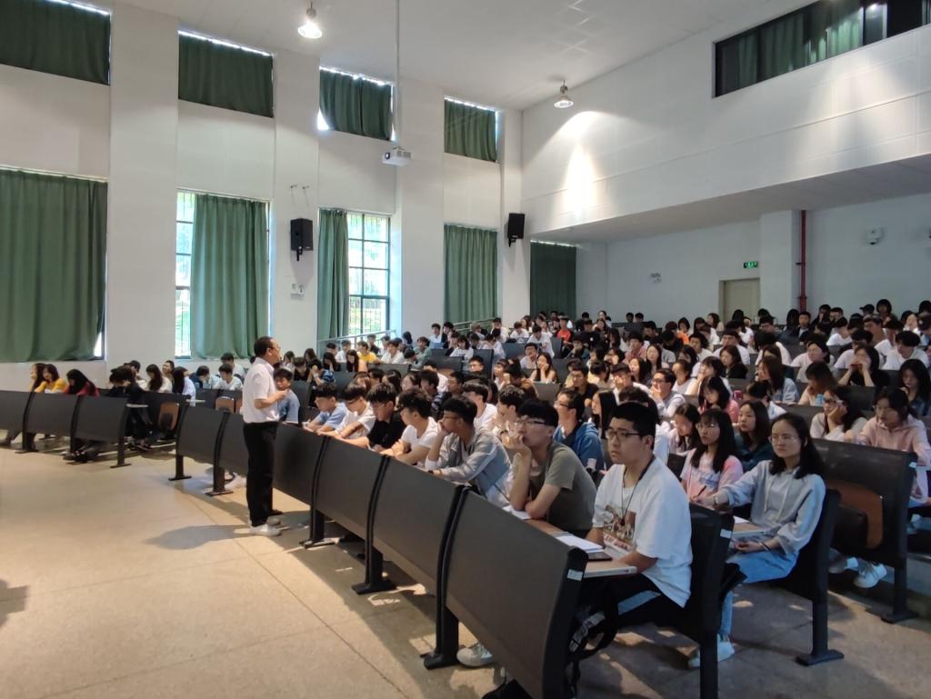 缪希松副书记结合当下四六级考试热点,从四六级差异、四六级核心知识、复习技巧等方面给学生进行讲解,教学语言诙谐幽默,学生学习积极性高,课下学生反映热烈。