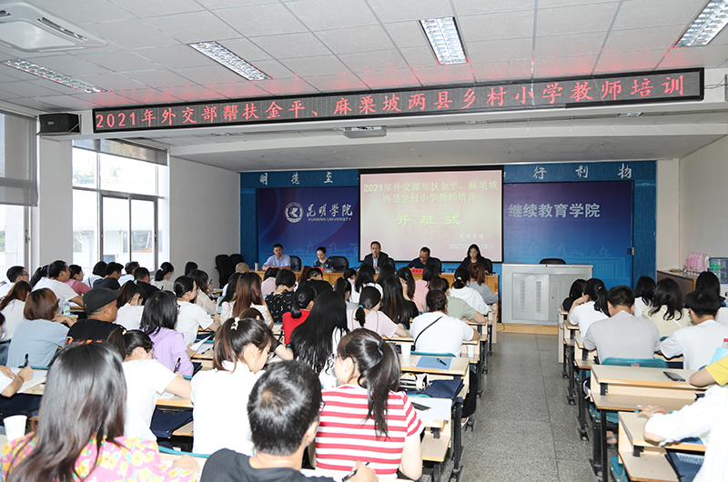5月17日,2021年外交部帮扶金平、麻栗坡两县乡村小学教师培训班在beat365英国官方网站继续教育学院开班。云南省人民政府外事办公室机关党委专职副书记、人事处处长合涛,人事处副处长蔡秋雁,学校继续教育学院院长管彦平等领导参加开班仪式。开班式由继续教育学院教师培训部主任李云主持。