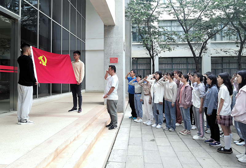 中午,医学院组织4个学生党支部的全体党员开展了“重温入党誓词、争做先锋模范”的主题党日活动。学院党委副书记李杨提出,要求党员同志们要进一步增强党员宗旨意识,亮明党员身份,规范党员行为。充分发挥党员先锋模范带头作用,通过党史学习教育,努力践行“学史崇德”,不断带动和促进学院学风、考风建设。