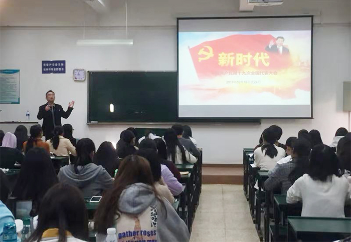 围绕“学习党的十九大精神,用习近平新时代中国特色社会主义思想武装头脑”这一主题,王建华全面解读了党的十九大精神,重点对习近平新时代中国特色社会主义思想产生的背景条件、核心要义、内容内涵、历史地位进行详细讲解,引导和帮助学生党员深刻把握党的基本理论、基本路线、基本方略,进一步增强中国特色社会主义道路自信、理论自信、制度自信、文化自信,增强学生党员对党的思想认同、理论认同和情感认同。