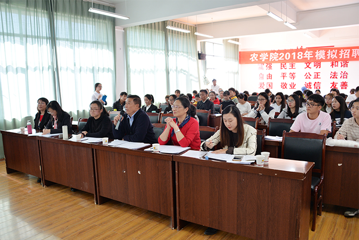 农学院于11月份全面启动模拟面试大赛,经过班级初赛,共选拔出9名选手参加了复赛。复赛于11月20日中午在农学楼1507会议室进行。学院大一至大三学生代表及辅导员到现场观摩比赛。
