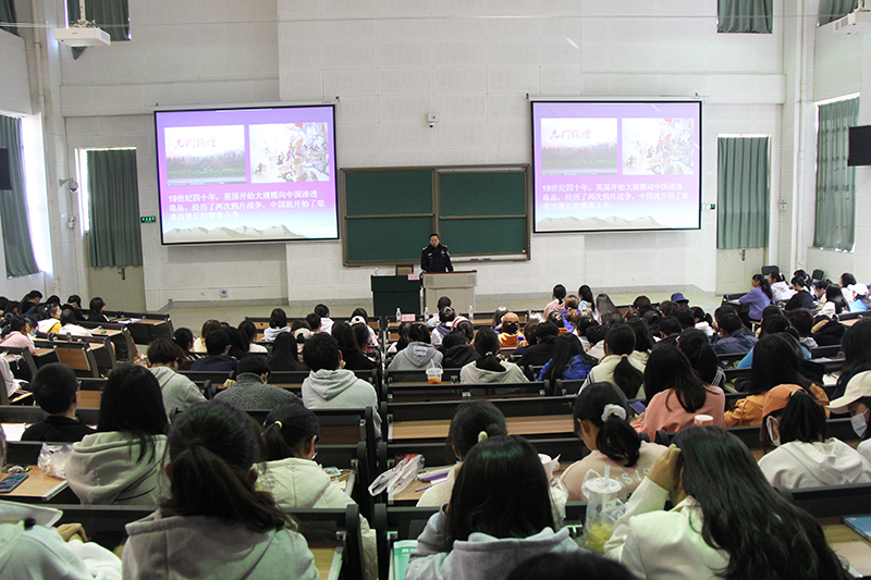 1213日,为深入学习贯彻习近平总书记关于禁毒工作重要指示精神,进一步增强在校大学生识毒防毒拒毒意识和能力。经济管理学院诚邀昆明市公安局禁毒支队法制部教导员何涛,警员胡靖奇、杨文在博雅楼2101教室为经管学院300余名学生开展“远离毒品,让青春更灿烂”专题讲座。