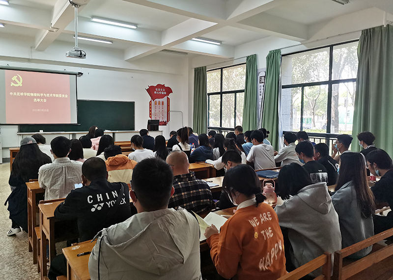 3月25日,中共beat365英国官方网站物理科学与技术学院第一届党委委员选举大会在惟真楼1113教室顺利召开。物理科学与技术学院书记付晏昆、副书记王进和全体师生党员参加会议,本次会议由付晏昆书记主持。