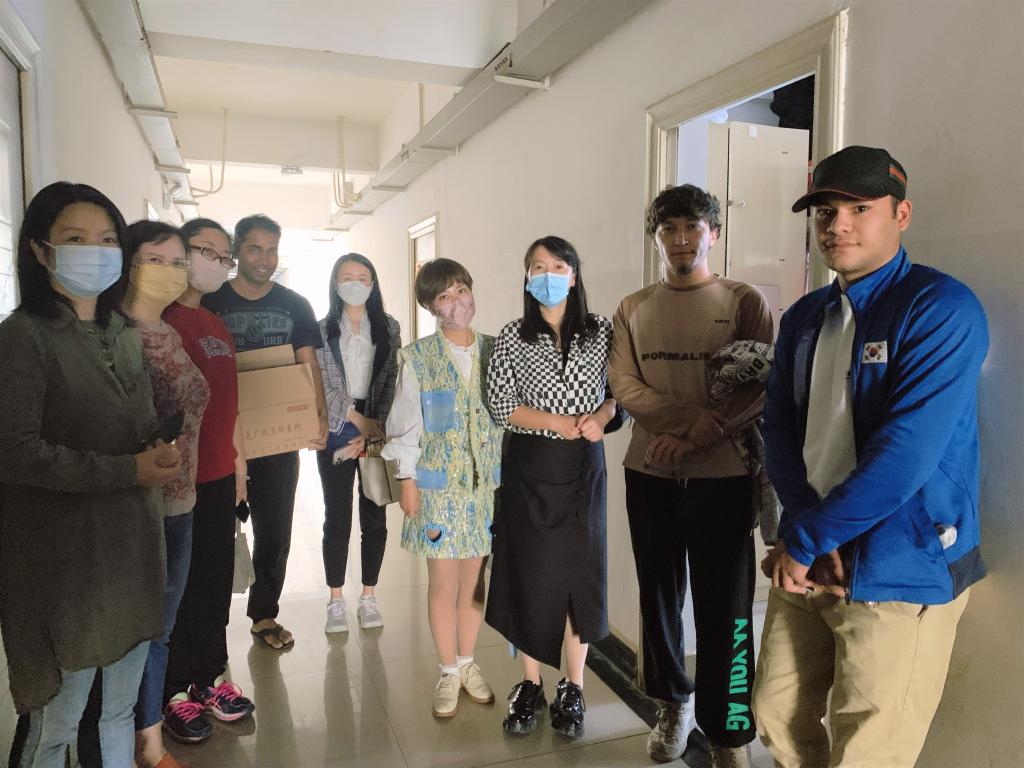 走访过程中,蔡琳副院长、老师们与学生们进行了深入交流,耐心解答了留学生们当前关心的学校疫情防控问题,为每个留学生做好政策解读和教育引导,并送上小小的祝福。