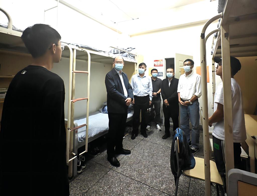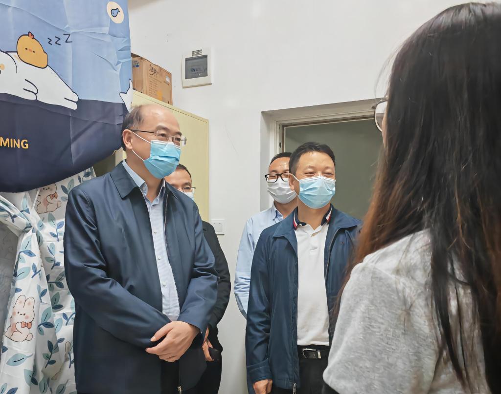 随后,金幼和来到学生宿舍,向宿舍管理人员了解宿舍管理制度执行情况和各学院走访学生宿舍情况,并到宿舍区自习室、宿舍,与同学们亲切交谈,仔细倾听同学们对学校管理服务、教育教学等方面的意见建议。金幼和勉励新同学要主动融入新环境,调整好学习状态,积极适应大学生活;要严格遵守学校疫情防控的管理规定,做好个人防护;要坚定理想信念,砥砺奋进,明大德、立大志、担大任,努力成为堪当民族复兴重任的时代新人。