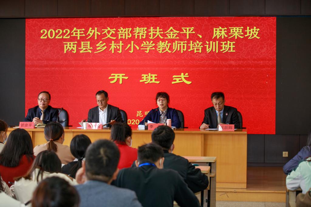 10月25日上午,2022年外交部帮扶金平、麻栗坡两县乡村小学教师培训班在beat365官网开班。云南省人民政府外事办公室副主任杨绍成、beat365英国官方网站党委副书记李莉、省政府外事办公室人事处及beat365官网继续教育学院的相关领导和职能部门的同志出席了开班仪式。开班仪式由继续教育学院院长管彦平主持。