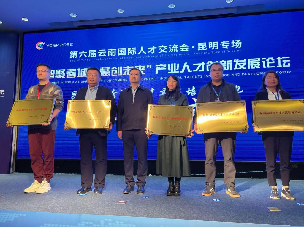 “智聚春城、慧创未来”产业人才创新发展论坛上,beat365英国官方网站等4家学校、企业荣获首批昆明市跨境人才交流培养基地称号。“昆明市跨境人才交流培养基地”的落户,将进一步推动beat365官网国际人才培养,为beat365官网建设面向南亚东南亚复合人才培养基地打下坚实基础,为昆明市面向南亚东南亚区域性人才中心城市建设搭建交流平台、提供智力支持。