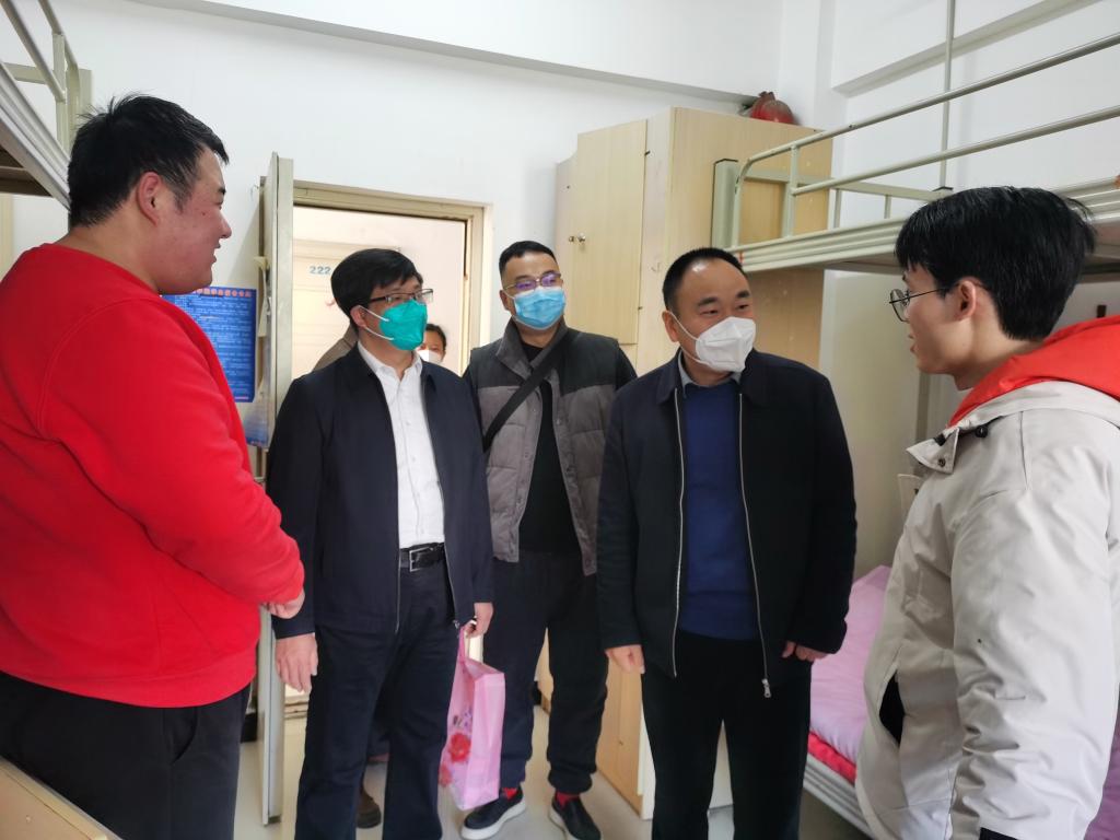 1月15日上午,在新春佳节即将到来之际,副校长郭华、李剀到学生宿舍看望慰问寒假留校学生。