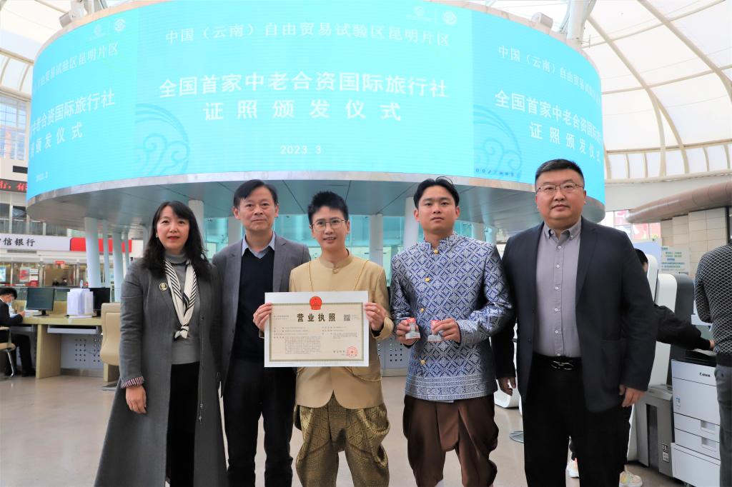 3月8日,全国首家中(国)老(挝)合资国际旅行社证照在中国(云南)自由贸易试验区昆明片区颁发,beat365官网老挝籍留学生王伟(中文名)创业项目“云南老中国际旅行社有限公司”落地自贸试验区昆明片区,这也是云南省首家外资旅行社在片区落地。