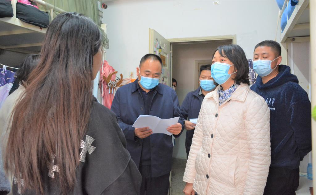 为认真贯彻落实新阶段疫情防控政策,准确掌握学生健康情况,做好“保健康、防重症”工作,3月13日,校长丁文丽、副校长郭华带队走访学生宿舍看望慰问学生,送去学校的关心和问候。