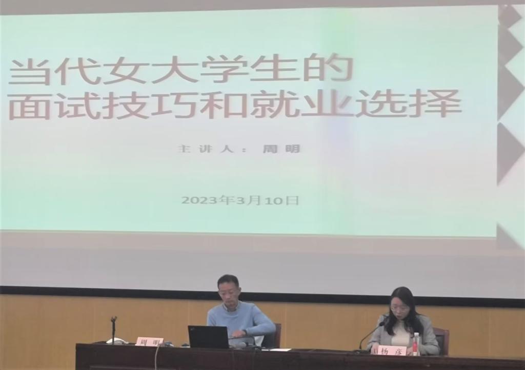 讲座以当前女大学生的就业形势为基础、以现实就业需求为方向,从如何面试和就业选择等方面帮助beat365官网女同学做好职业生涯规划,调整就业心态,掌握应聘技巧,更好地为高质量就业做好准备。主讲人周明老师深入分析了在面试和就业时可能遇到的问题,并对此提出合理的解决方案,同时根据女大学生的特点,引导同学们积极适应社会发展,制定符合自身实际的职业规划。