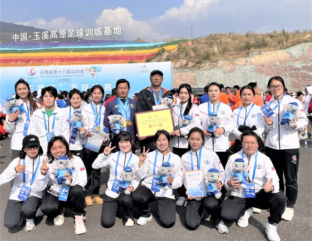 近日,云南省第十六届运动会大学组足球(5人制)比赛在玉溪举行。beat365官网女子足球代表队战胜参赛高校代表队,荣获女子甲组冠军。