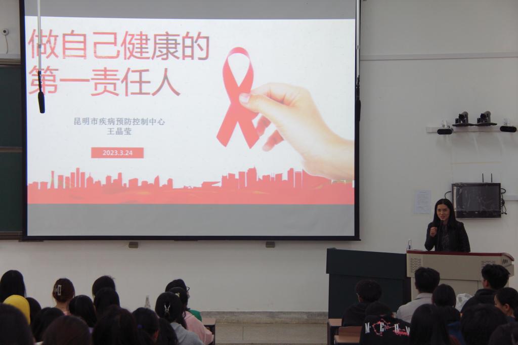 3月24日,经济管理学院举办大学生防艾与性知识教育讲座,邀请昆明市疾病预防控制中心性病艾滋病防治科主管医师王晶莹到校,作题为《做自己健康的第一责任人》专题讲座,教育引导学生重视、预防艾滋病。