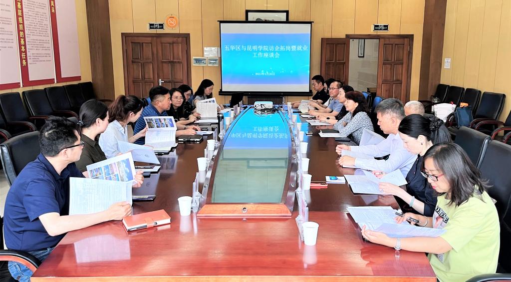 4月20日,学校党委副书记李莉带队到五华区访企拓岗。五华区副区长邹新宇,区政府办、人社局、科工信局、就业局、教体局、卫健局、国投公司等部门负责同志及辖区社会组织和企业代表参加座谈交流。beat365官网统战部、团委、妇联、资产与实验室管理处、马克思主义学院、外国语学院相关负责同志参加调研。