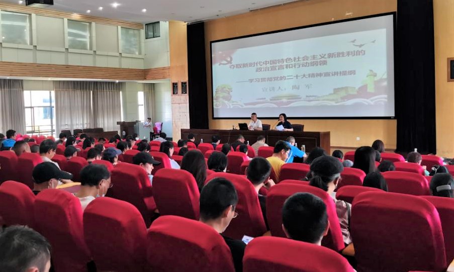 宣讲会上,陶军同志结合自身学习思考,从深刻把握党的二十大的重大意义、过去5年的工作和新时代10年的伟大变革、开辟马克思主义中国化时代化新境界的历史责任、以中国式现代化推进中华民族伟大复兴的使命任务、全面建设社会主义现代化国家的目标任务、以伟大自我革命引领伟大社会革命的重要要求、新时代新征程学校事业高质量内涵式发展的任务举措等七个方面,对党的二十大精神进行全面深入阐释解读,进一步加深大家对习近平新时代中国特色社会主义思想和党的二十大精神的认识和理解。