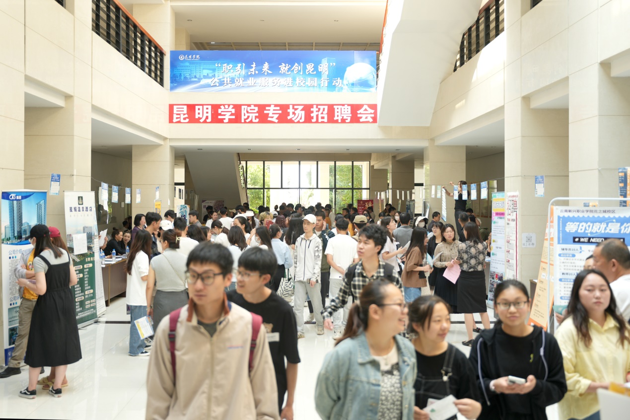 5月10日,学校在办公楼D区一楼大厅举办“职引未来 就创昆明”公共就业服务进校园专场招聘会。