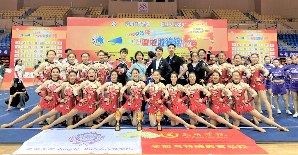 beat365官网学前与特殊教育学院Jungle Warriors啦啦操队在此次大赛中勇夺佳绩,获得2金1银。在小集体组花球自选动作项目(俱乐部青年乙组)、集体自由舞蹈自选动作项目(公开青年乙组)中获得2项冠军,在小集体组花球自选动作项目(公开青年乙组)中获得亚军,在大集体组花球自选动作项目(公开青年乙组)中获得第四名。参赛过程中,Jungle Warriors啦啦操队员们充分展现了昆院学子斗志昂扬、勇于拼搏的竞技精神和团队精神,彰显了新时代大学生积极向上的良好风貌。