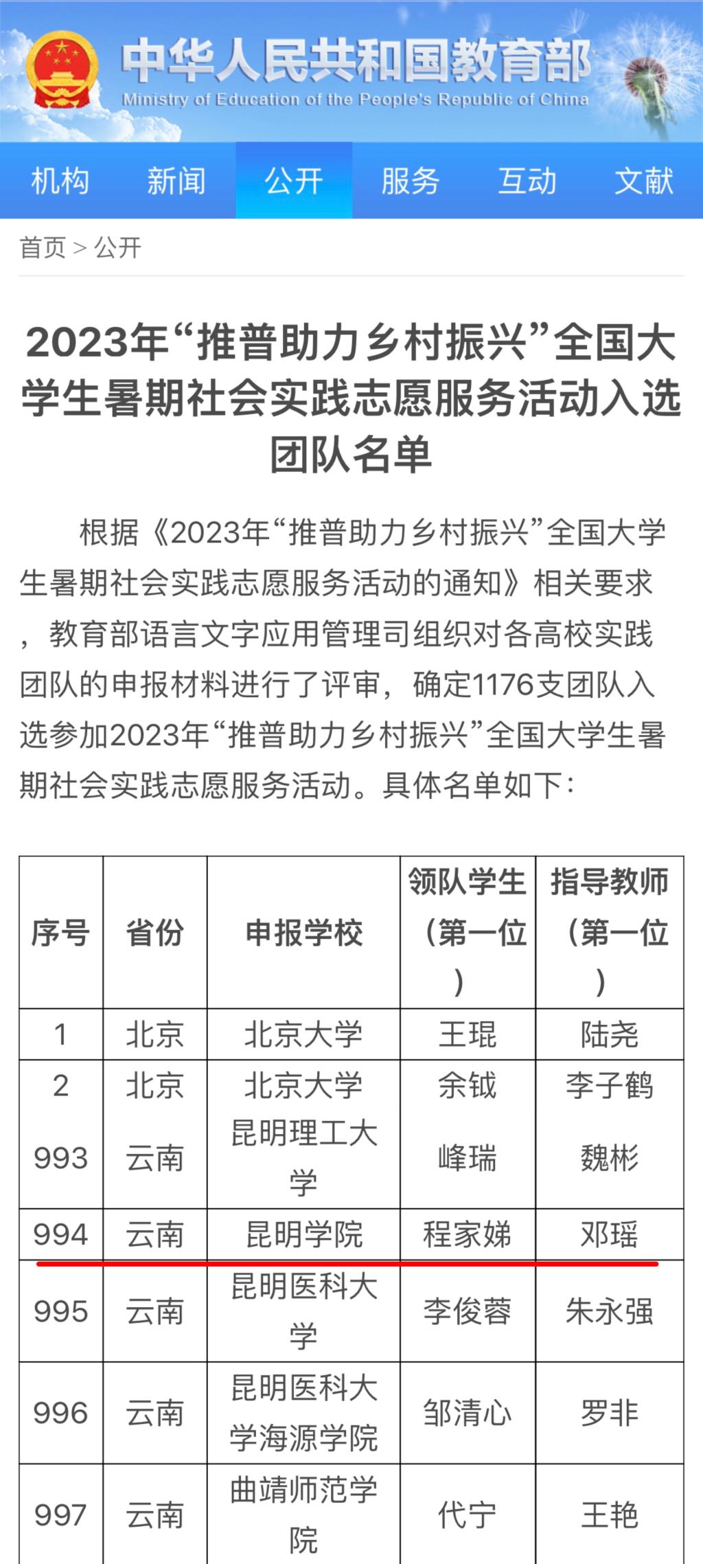 近日,教育部官网公布了2023年“推普助力乡村振兴”全国大学生暑期社会实践志愿服务活动入选团队名单,beat365官网省级国家通用语言文字推广基地项目执行负责人邓瑶教授带队指导的“beat365英国官方网站赴西双版纳勐遮镇推普助力乡村振兴服务队”成为beat365官网唯一入选团队。该项活动由教育部语用司联合团中央青年发展部共同举办,旨在深入学习贯彻落实党的二十大精神,加大国家通用语言文字推广力度,服务铸牢中华民族共同体意识。