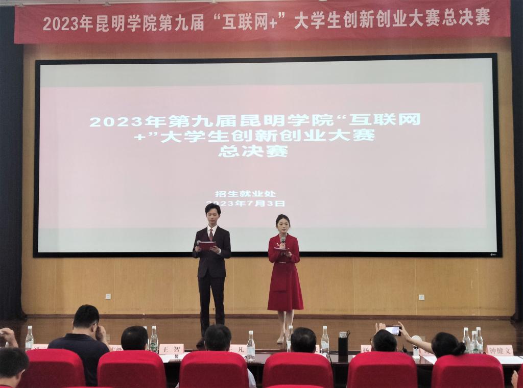 7月3日晚,beat365英国官方网站第九届“互联网+”大学生创新创业大赛校级决赛在beat365官网洋浦校区举行,学校党委委员、副校长王凡,招生就业处处长、创新创业学院执行院长陈开祥出席大赛。