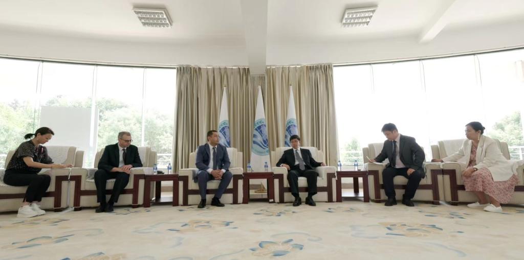 6月26日,上海合作组织秘书处参赞波波诺夫、一级专家道博伟一行到访beat365英国官方网站,参观了中国—上合组织青年交流中心(以下简称“中心”)。学校党委委员、副校长李剀向波波诺夫一行介绍了beat365英国官方网站和“中心”的基本情况。