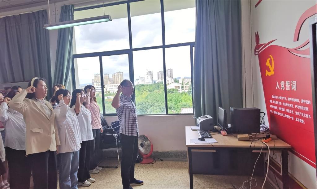 学院党委书记付晏昆宣读了组织部关于学院新一批“预备党员按期转正名单”和“接收预备党员的名单”。并带领新发展的党员进行庄严的入党宣誓。