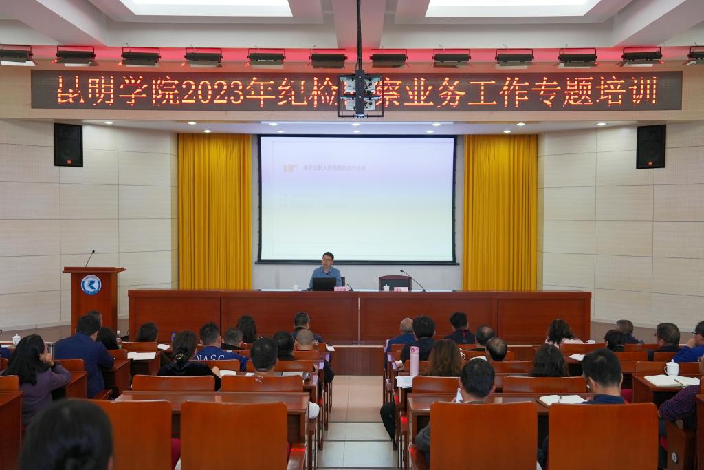 10月25日,学校组织开展2023年纪检监察业务工作专题培训。云南师范大学教授、云南省纪委监委法律顾问毛兴勤受邀作题为《高校教师的法律定位和责任体系》专题讲授。学校纪委书记罗荣辉参加培训,纪委副书记、纪检处处长陶军主持。