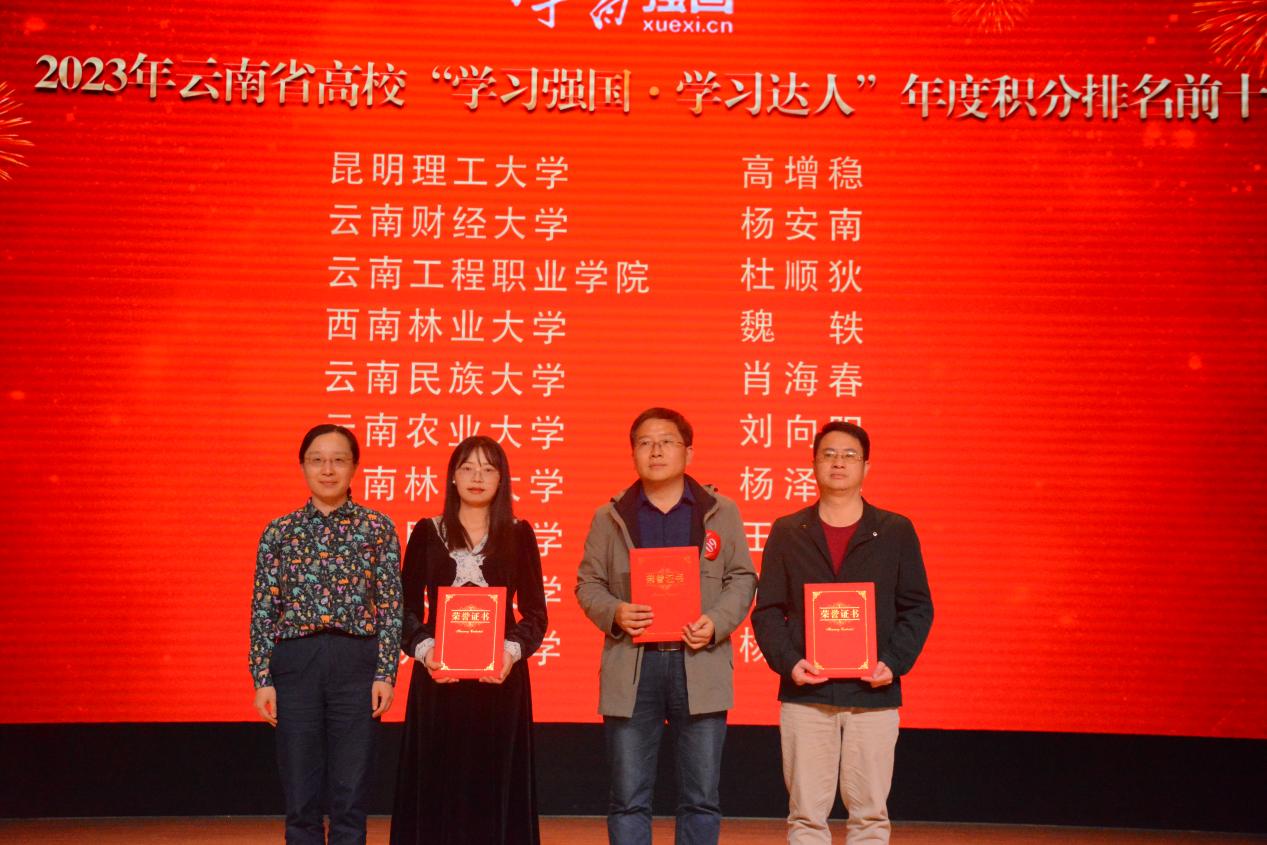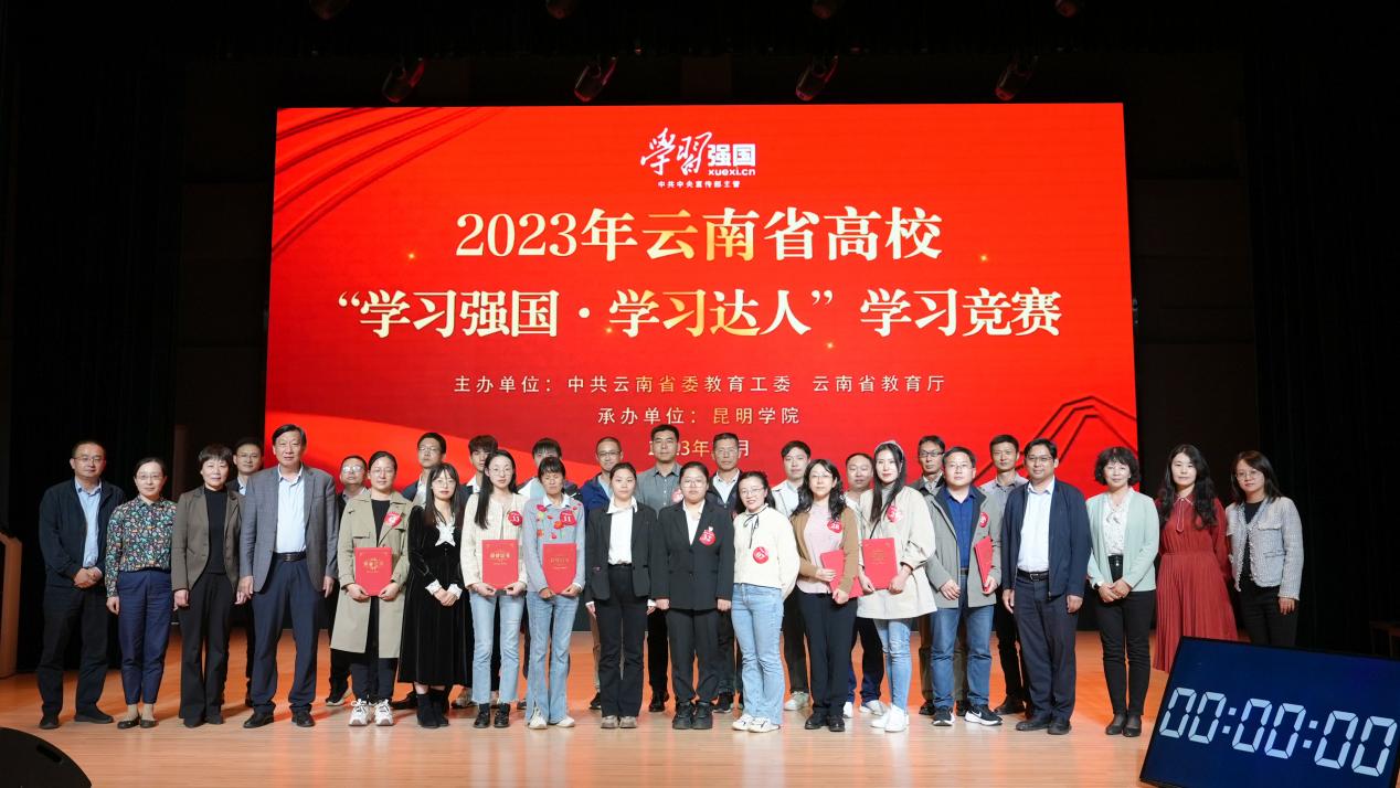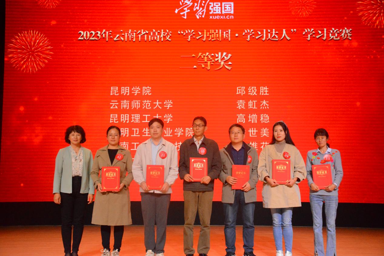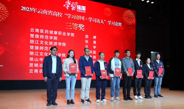 参赛选手反应敏捷、沉着应战、配合默契,展现了“比学赶超、奋勇争先”的精神风貌。经过激烈角逐,云南民族大学唐婷婷、云南开放大学王余舟获一等奖,beat365英国官方网站邱级胜等6名参赛选手获二等奖,云南医药健康职业学院邵婷等8名参赛选手获三等奖。此次活动还遴选出全省高校10位年度“学习达人”。beat365英国官方网站党委副书记李莉,省委教育工作领导小组秘书组、省委教育工委、省教育厅关工委有关同志出席活动并为获奖师生颁奖,全省在昆高校党委宣传部门负责人参加了现场观摩。