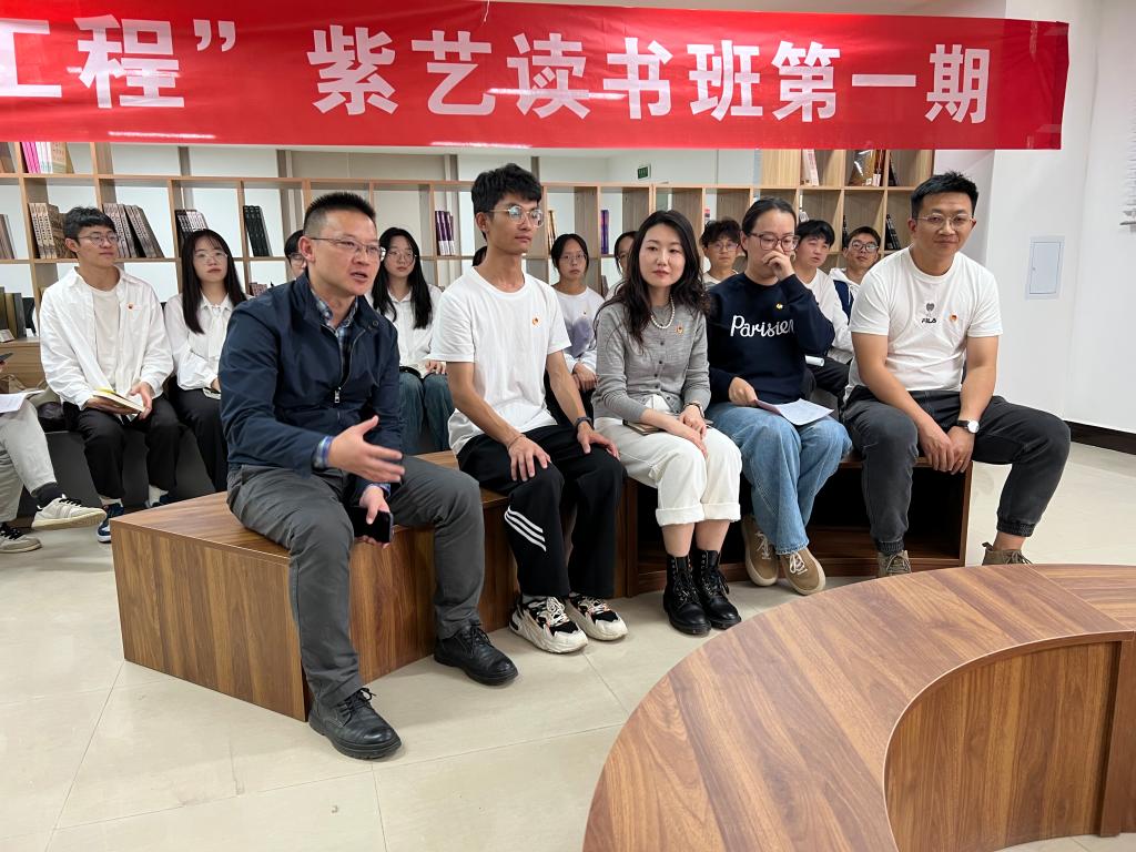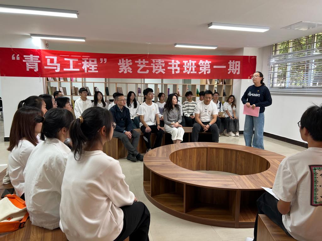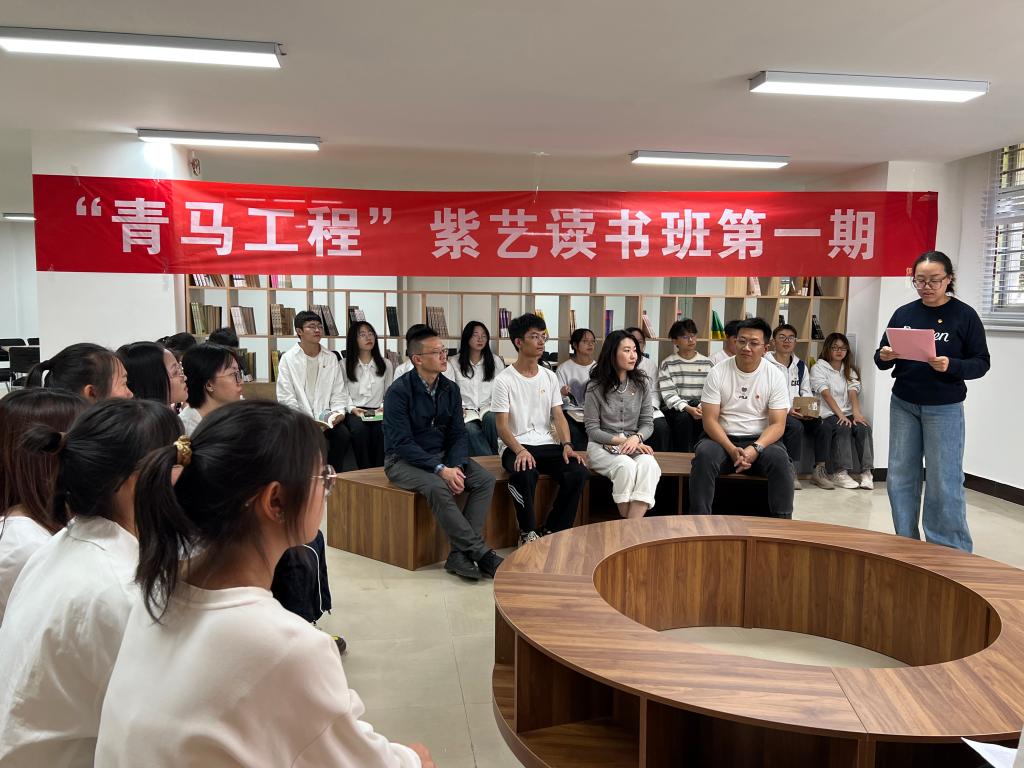 11月4日下午,beat365英国官方网站团委在“一站式”学生社区党建文化悦读空间举办“青马工程”第二期紫艺读书会。校团委、二级学院团委相关师生团干部,校团委宣传部、新媒中心、学术科创部、广播台、学生成长服务中心、研究生会、大学生艺术团等“青马”学员参加读书会。