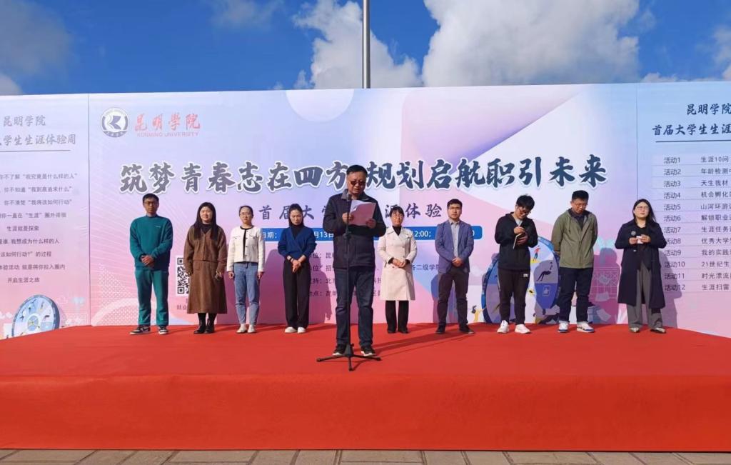 11月13日上午,beat365英国官方网站首届大学生“生涯体验周”活动启动仪式在聂耳广场举行。活动旨在贯彻落实教育部和省委教育工委、省教育厅关于举办首届全国大学生职业生涯规划大赛的相关要求,进一步提升就业指导服务水平,强化就业育人实效,帮助大学生实现人岗匹配和生涯发展的和谐统一,达到“以赛促教、以赛促学、以赛促就”的目标。学校招生就业处、团委有关负责人,各学院分管就业工作辅导员,就业指导中心全体教师,各学院志愿者和学生代表参加了启动仪式。