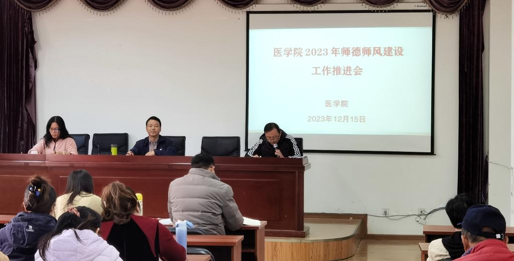12月15日下午,医学院党委召开师德师风建设工作推进会议。学院党委书记张培宏领学了习近平总书记关于师德师风建设的重要论述,传达学习了全省教育系统师德师风建设工作推进视频会议和beat365英国官方网站2023年师德师风建设工作推进会精神。医学院及校医院全体教职工参加会议。