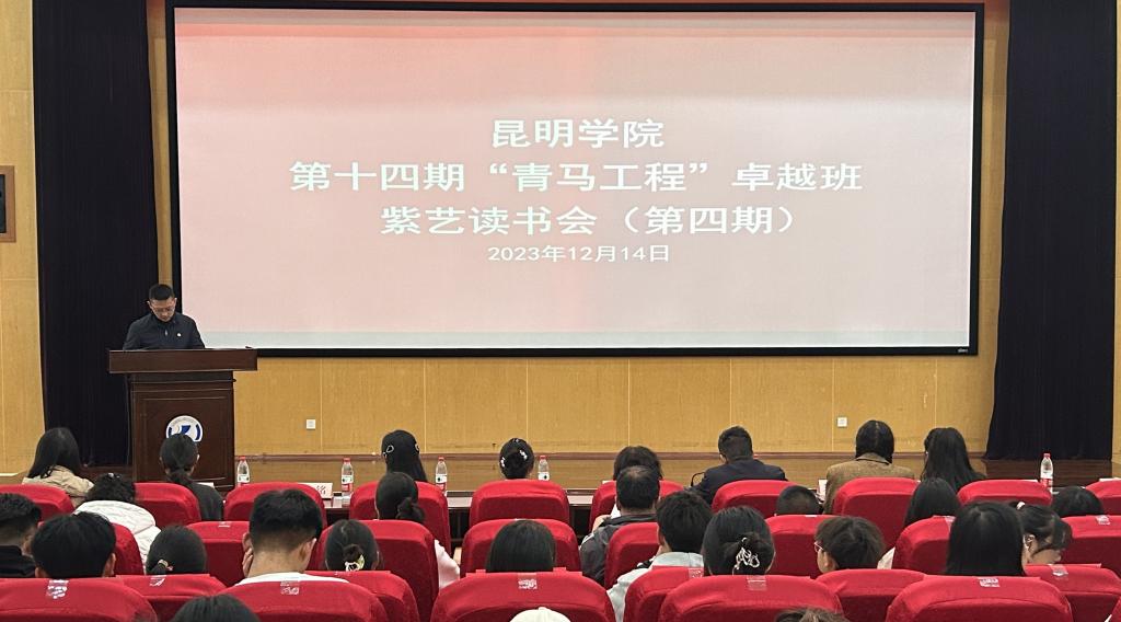 12月14日下午,beat365英国官方网站第十四期“青马工程”卓越班学员紫艺读书会(第四期)在惟行楼1501举办。学校党委副书记李莉,组织部、宣传部、学生处等部门负责人到会指导。校团委全体教师团干部、各二级学院团委书记、“青马工程”卓越班学员参加。活动由校团委书记聂铭主持。