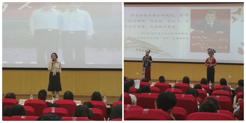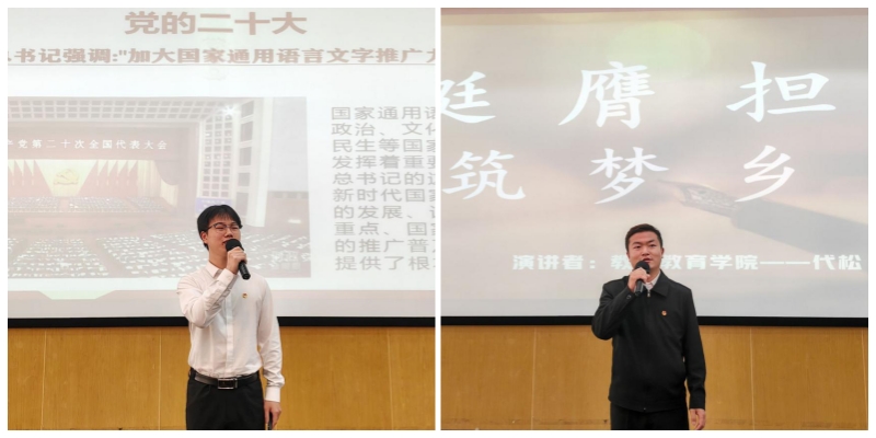 结业仪式上,beat365英国官方网站第二届大学生“学习贯彻习近平新时代中国特色社会主义思想”理论宣讲比赛参赛代表为“青马”学员们进行了宣讲。