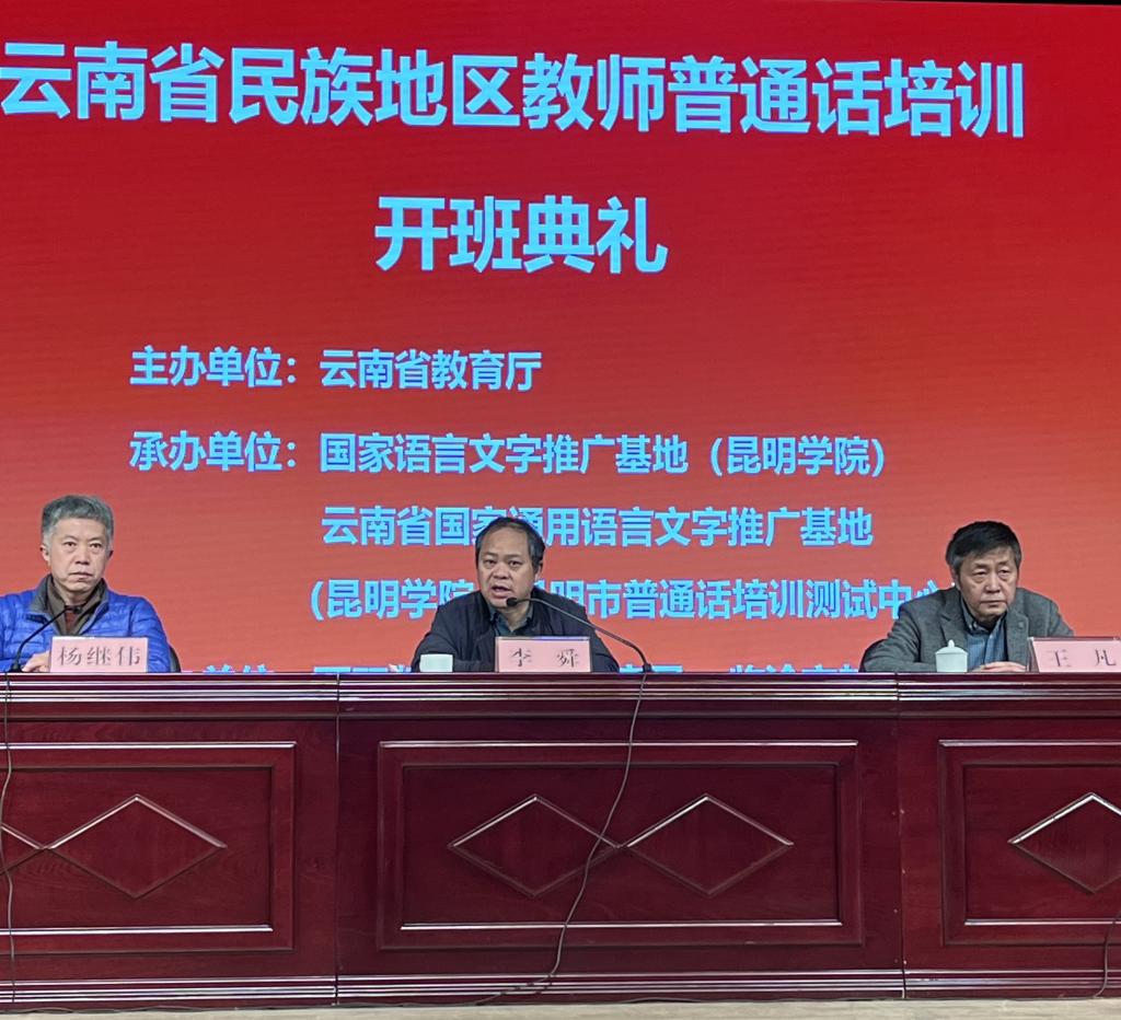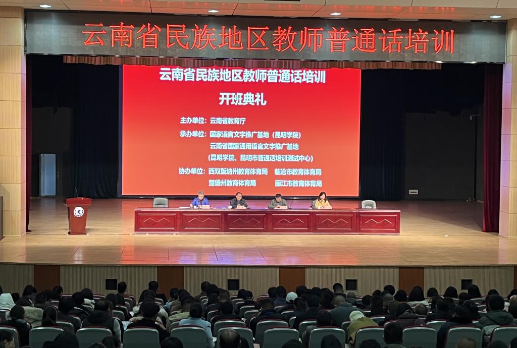 为贯彻落实教育部、国家语委对教师普通话水平的等级要求,落实云南省教育高质量发展三年行动计划,根据《云南省教育厅关于做好民族地区教师普通话培训的通知》要求,由省教育厅主办,国家语言文字推广基地(beat365英国官方网站)、云南省国家通用语言文字推广基地(昆明市普通话培训测试中心)联合承办的云南省民族地区教师普通话培训,于1月15日上午在beat365官网学生会堂举行了开班典礼。