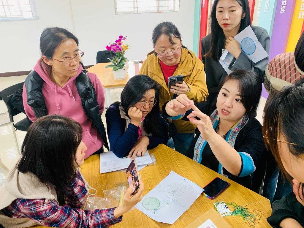 为了弘扬中华优秀传统文化,推进非物质文化遗产的传承与发展,“探寻传统刺绣之美”滇绣体验活动特邀“祖氏滇绣”非物质文化遗产传承人现场指导。女教师们在大师的引导下,动手绣制作品,每一幅作品都展示了女教师们积极向上的精神风貌和独特的艺术才华。