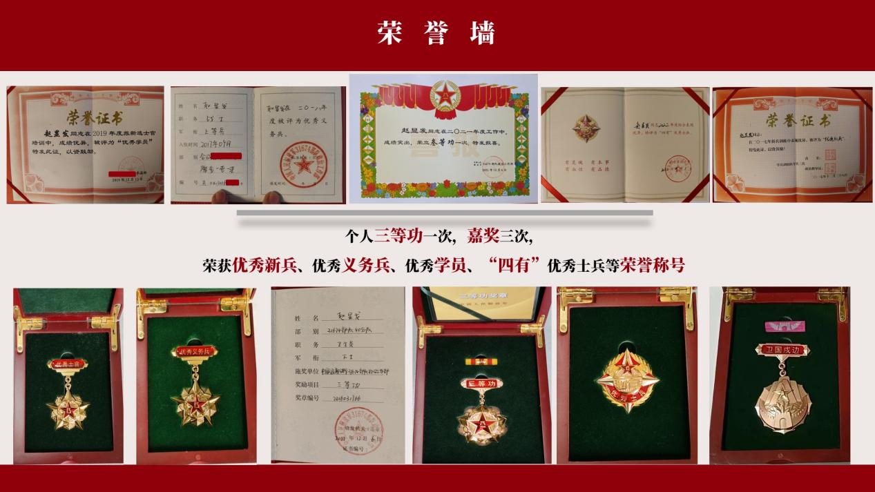 服役期间,赵显发用奋斗点燃青春梦想,用戎装雕刻青春本色,用行动创造人生价值,在军营中书写自己的人生华章。在日常战备训练中,他表现突出,军事素质和综合素养在连队名列前茅。参加过陆军“精武-2018”军事比武竞赛、陆军“百连万人”新条令比武、“狩猎行动”等重大军事比武竞赛及各类联防联训任务。先后担任过副班长、新闻报道员、卫生勤务员、营文书等职务,有丰富扎实的基层工作经验,综合素质较强。曾荣立个人三等功一次、嘉奖三次,荣获优秀新兵、优秀义务兵、优秀学员、“四有”优秀士兵等荣誉称号。