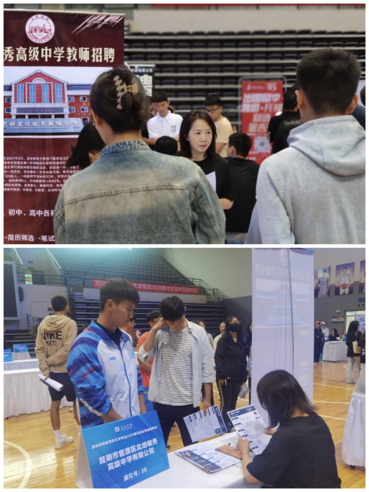 5月24日,beat365英国官方网站体育及艺术类专业2024届毕业生专场招聘会在学校综合体育馆举办。
