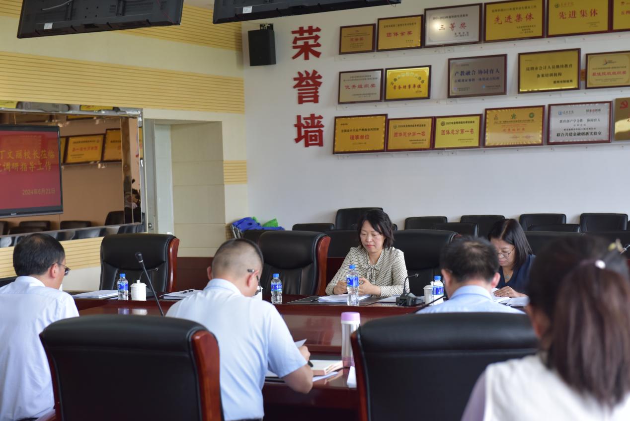 在全面听取学院工作情况汇报和部门工作建议后,丁文丽要求,针对省级一流学科建设,要抓紧做好“数字经济”专业硕士点人才培养方案的制定和课程体系的设置,明确人才培养目标定位,体现人才培养特色;针对省级哲社创新团队,要厘清“跨境数字经济”的学科专业内涵,与信息工程学院共建科研团队,进一步推动在云南面向南亚东南亚跨境数字贸易领域的问题研究;针对省教育厅重点实验室建设,要制定建设方案,明确重点实验室的研究方向。丁文丽强调,学院要高度重视自贸学院的建设,到中国(云南)自贸试验区昆明片区开展广泛调研,全面推动与自贸试验区昆明片区管委会、自贸试验区头部企业的沟通合作,充分发挥“校企政商”各方力量,将自贸学院建设成为真正意义上的现代产业学院。